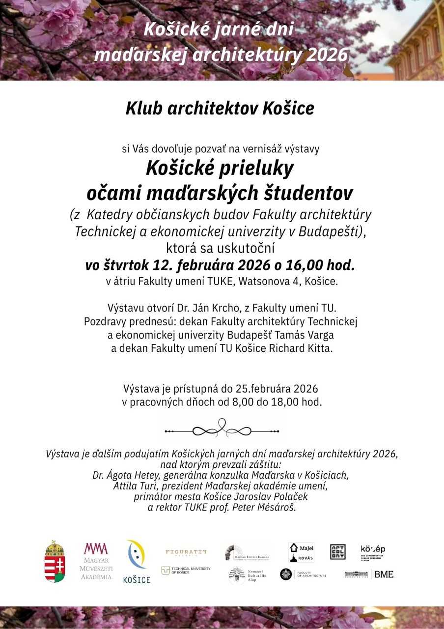 Pozvánka - Košické jarné dni maďarskej architektúry 2026 „Košické prieluhy očami maďarských študentov“ (12.2.2026 o 16:00 h.)